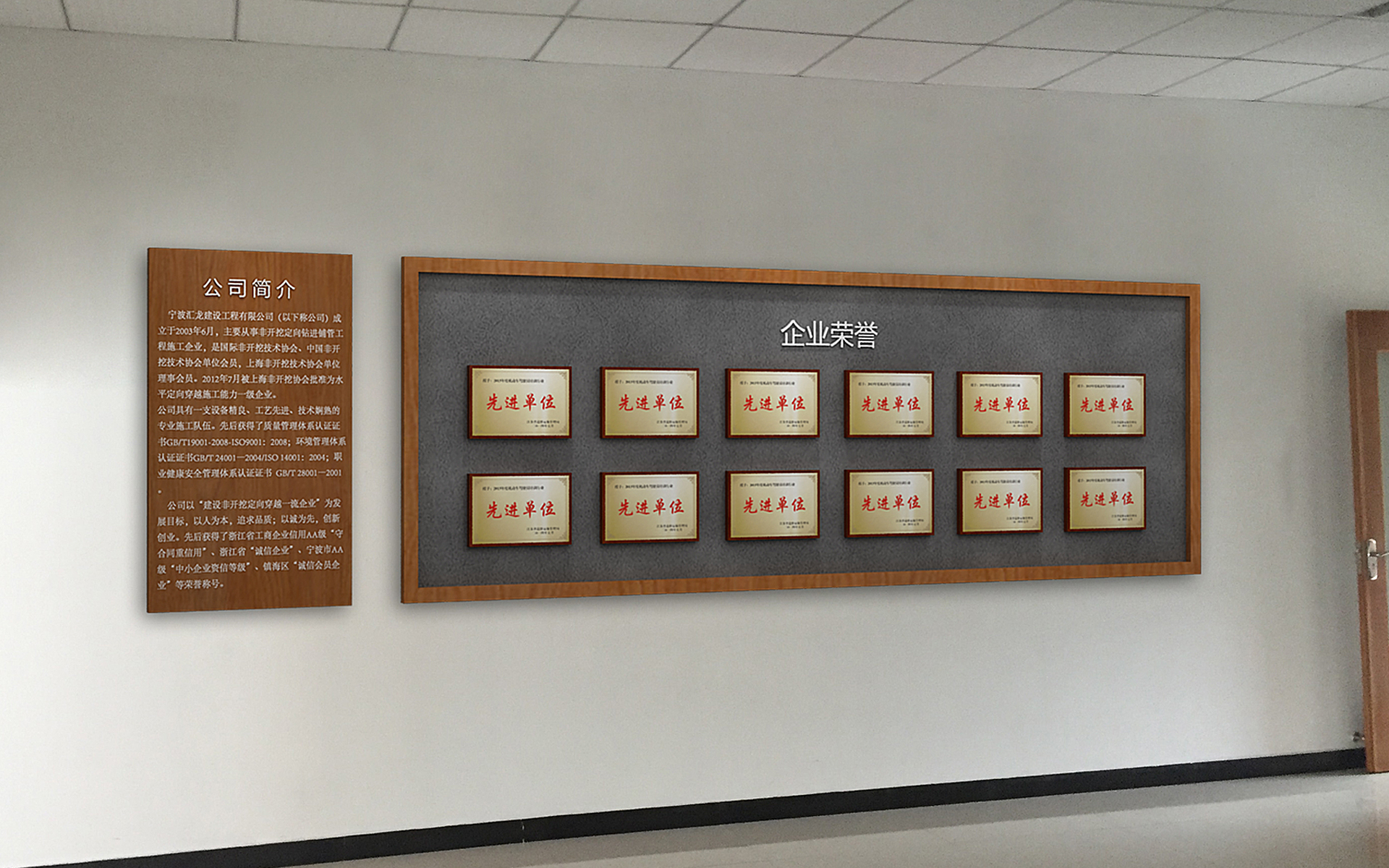 宁波汇龙市政园林建设有限公司,主要经营范围为:地下管线非开挖施工、工业与民用建筑工程施工、市政公用设施工程施工、室内外装饰、钢结构安装、绿花工程、管道、线路工程施工,地基与基础工程施工;设备租赁;电力设施、机电设备安装维修;智能化工程,环保工程,安全防护工程,消防设施工程的施工;及汽车普通货物运输服务经北京中安质环认证中心审核确认